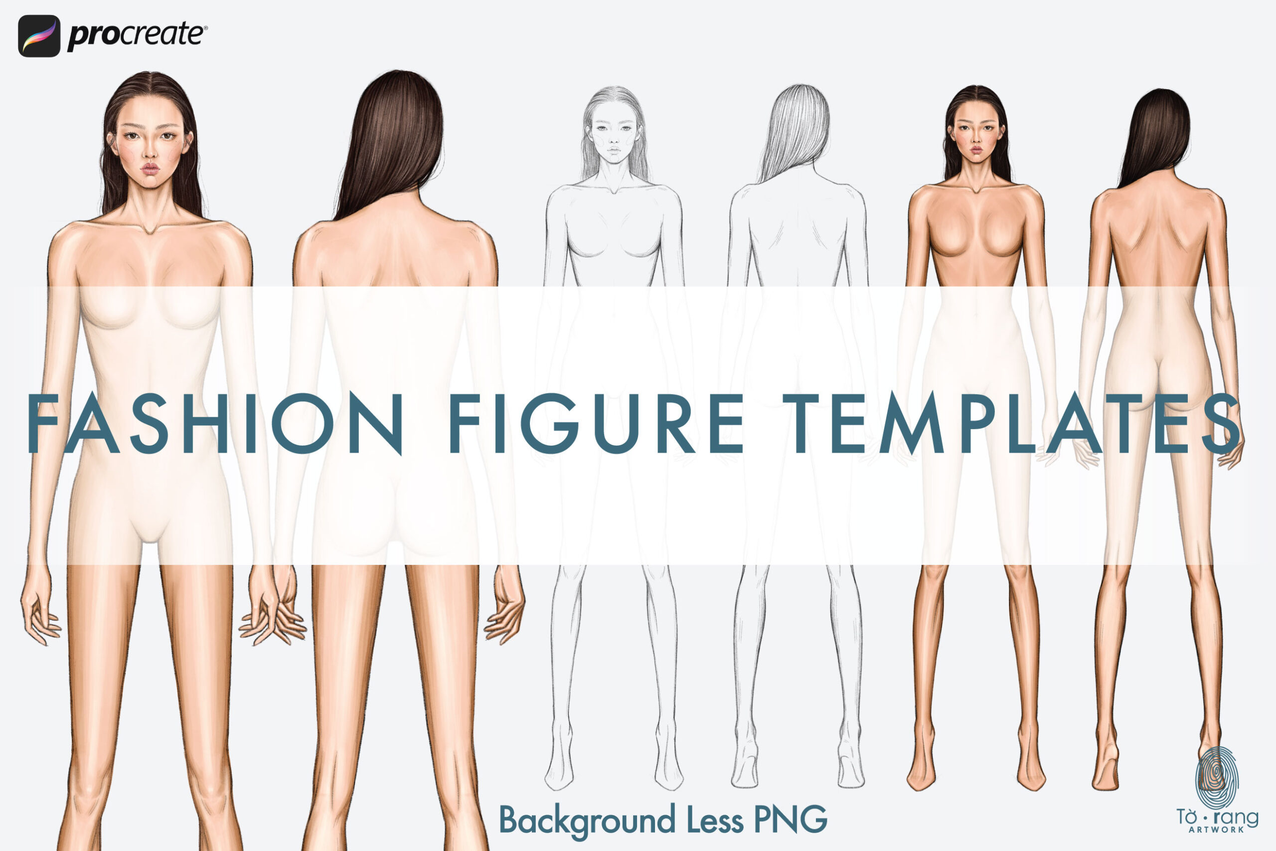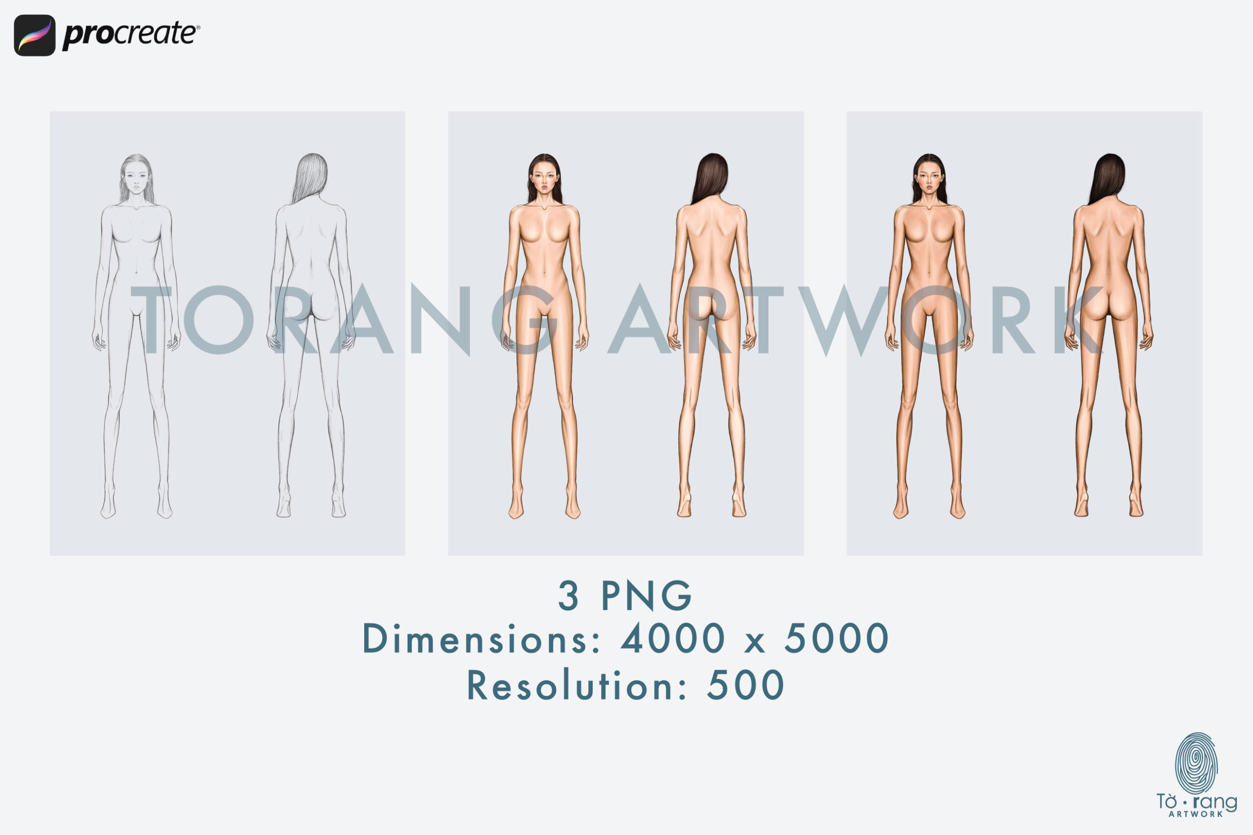 Asian Fashion Figure Templates – 9-Head Standing Pose (Front & Back Views, PNG for Procreate)