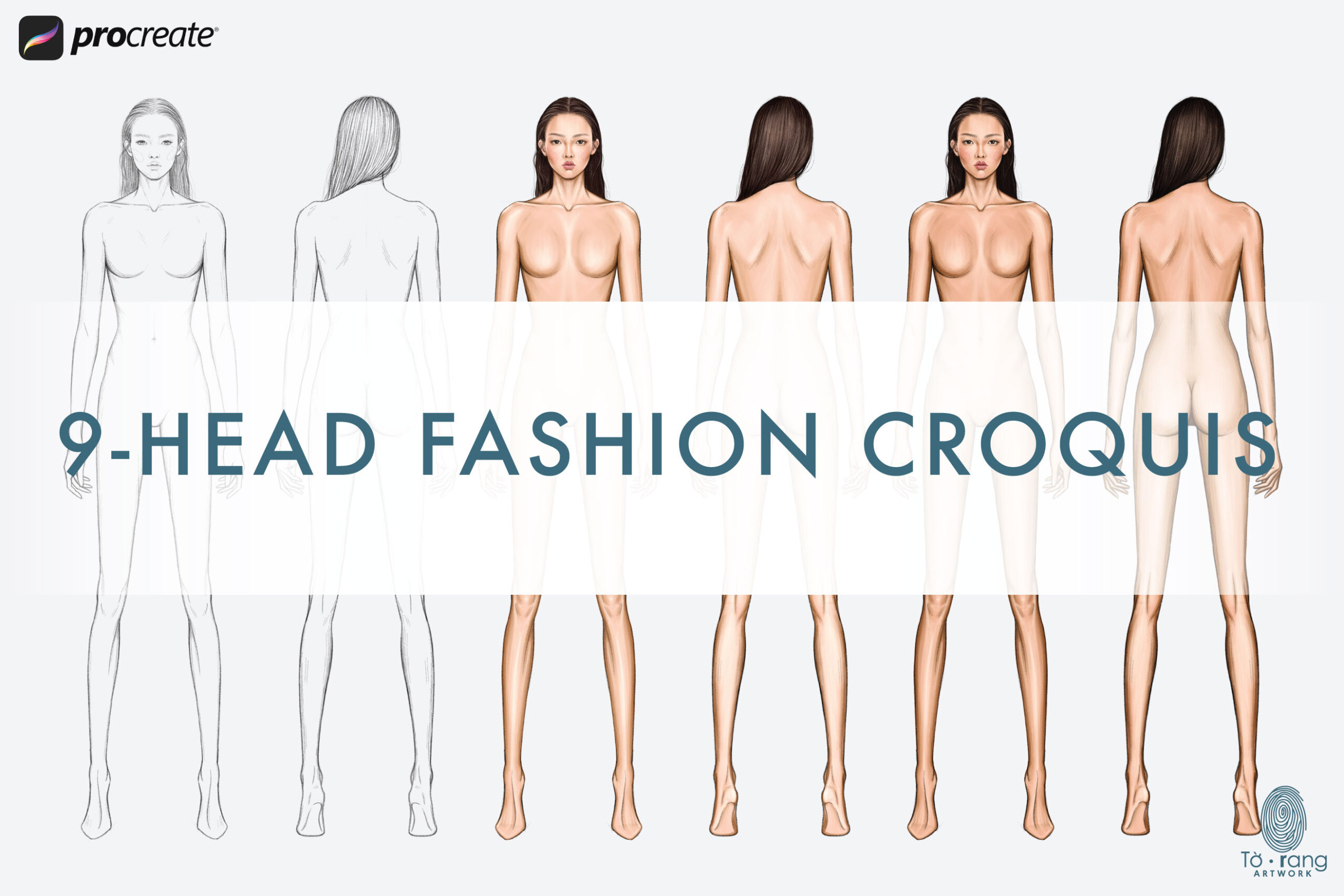 – Front and back views of a 9-head fashion figure (9-head refers to the model’s proportion, not the number of figures)