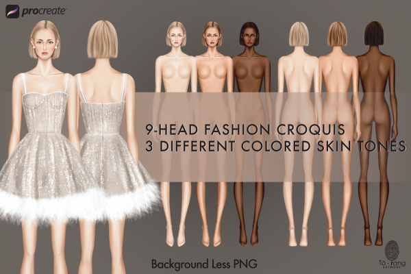 – 3 versions of the same figure: pencil sketch, dark skin tone, and deep skin tone